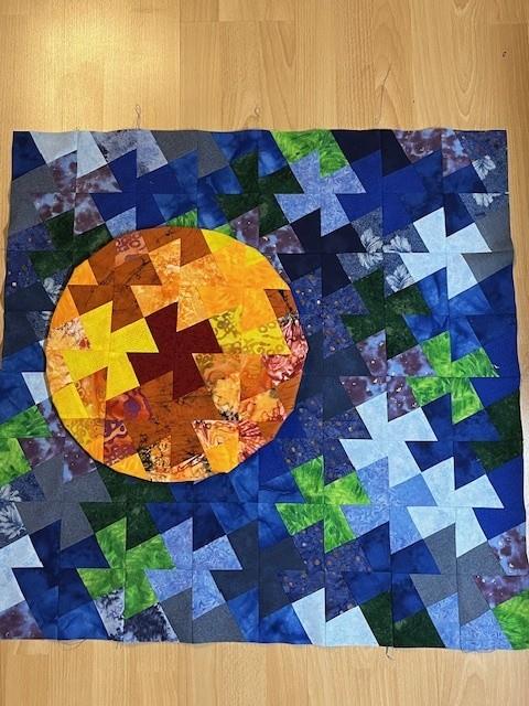Als Anschauungsobjekte stelle ich einen kleinen Wand-Quilt sowie eine Tasche vor. Es sind aber auch Tischdecken, -Läufer, Kissen und Kuscheldecken gut zu nähen.