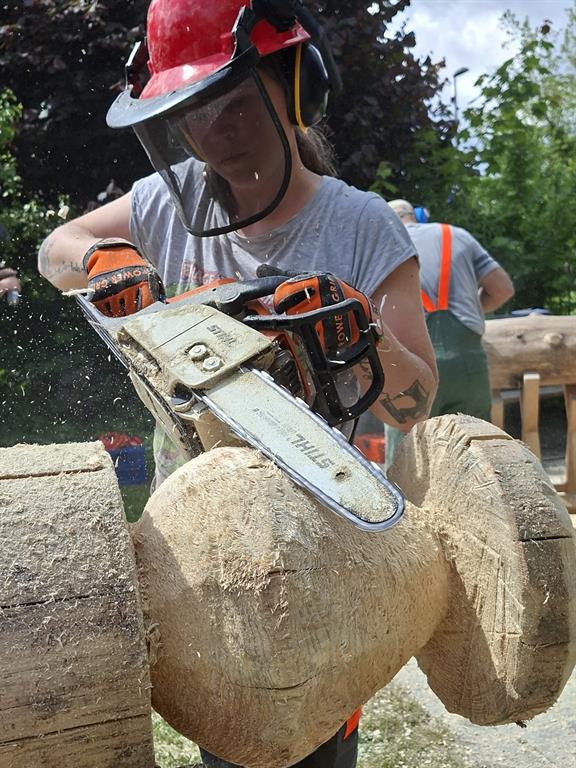 Einführung ins Schnitzen mit der Kettensäge. Je nach Voraussetzung der Teilnehmer:innen beginnen wir mit einfachen Übungen und Schnitttechniken bis hin zu konkreten Figuren.