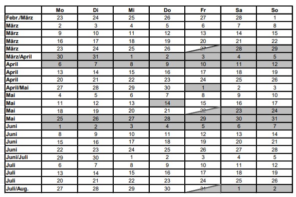 In der Regel unterrichtsfreie Tage: